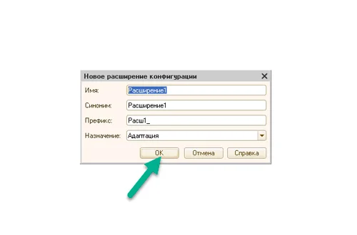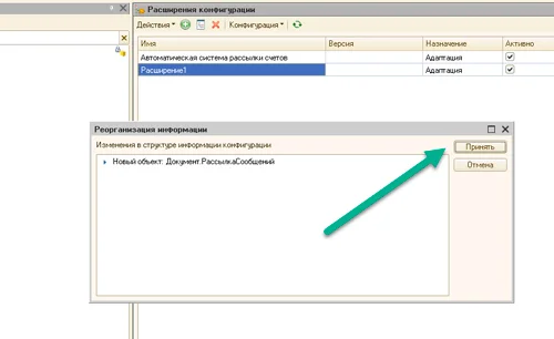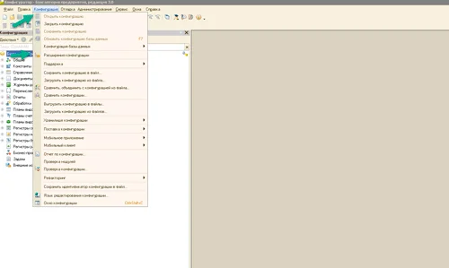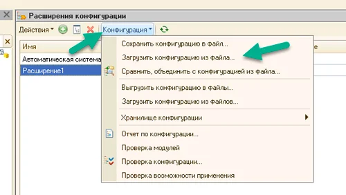 1. Выбираем Конфигурация - Расширение конфигурации в конфигураторе.